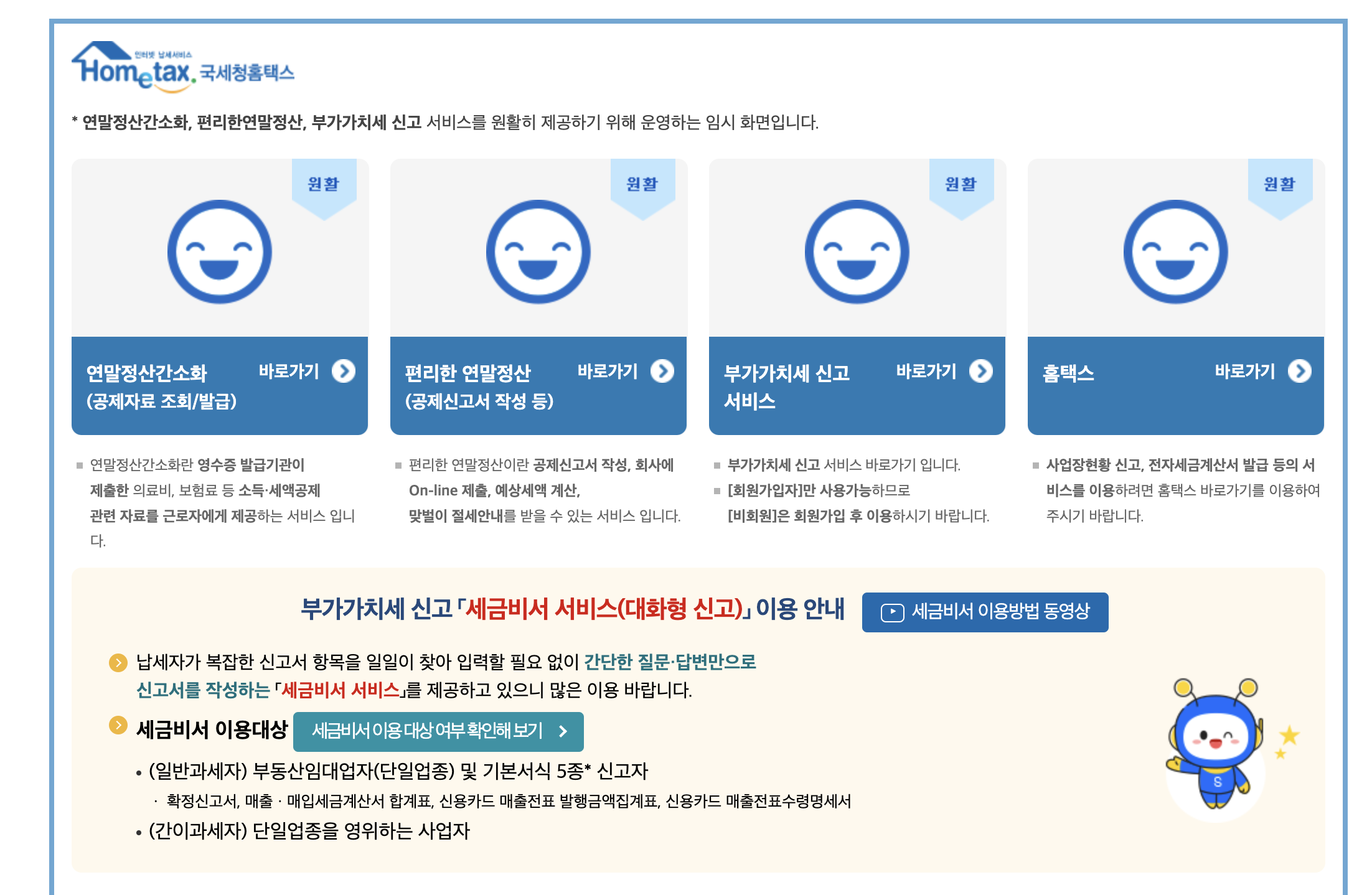 연말정산 서비스 이용자 폭증으로 접속이 원활하지 않을 수 있습니다.