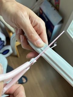 창틀용 가스켓 설치 시 저희집은 창문 잠금 장치가 중간에 있어서 가스켓을 잘라줘야되는데요. 뭐 우린 예술가도 아니니 저는 연필로 쓰윽 긋고 딸아이 가위로 쓰윽 잘라줬답니다. 생각보다 쉽게 잘리니 절대 긴장하지 마세요.