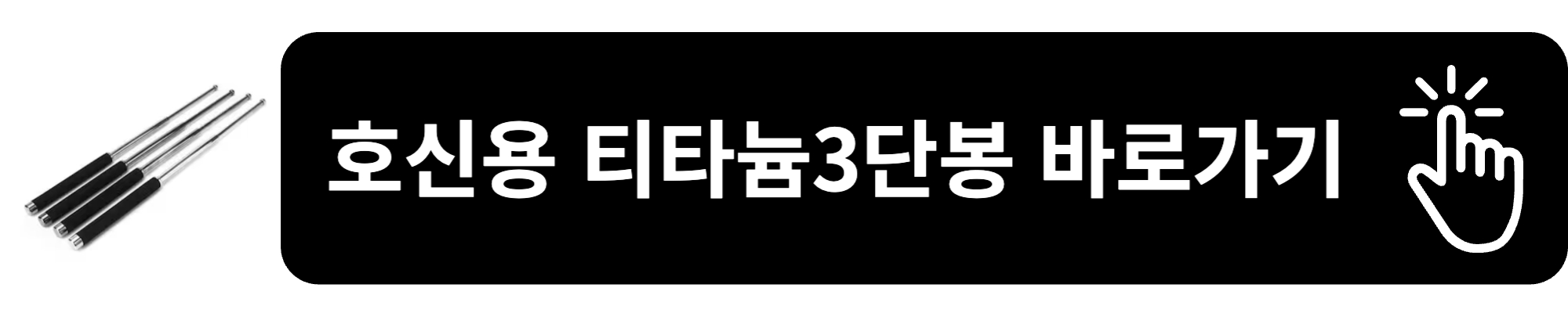 물론 스테인리레스 제품도 있지만 내구성이 떨어져 오래 사용이 어렵다고 하오니 "티타늄 소재 삼단봉"을 사용하시는 것이 좋습니다.
