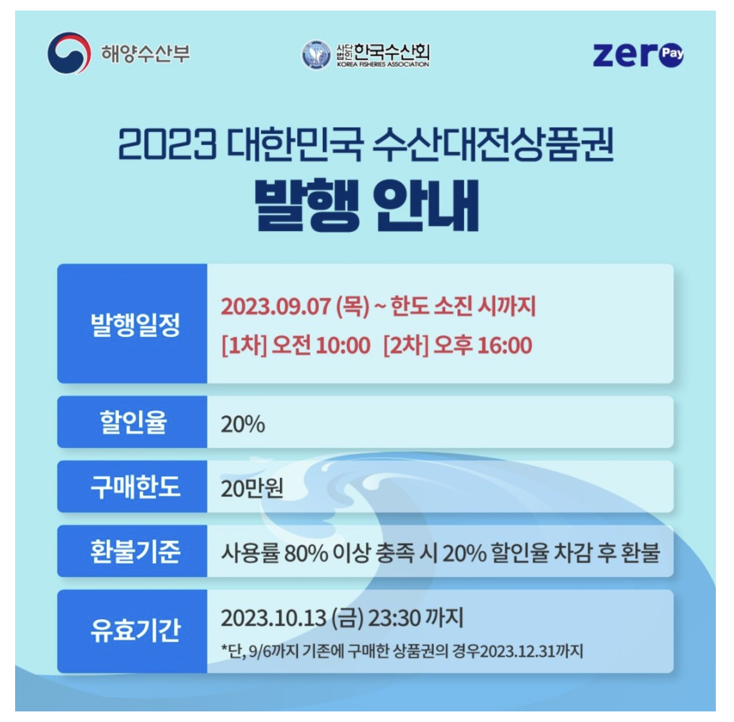 ▶︎ 수산물 전용 제로페이 모바일 상품권 20% 발행