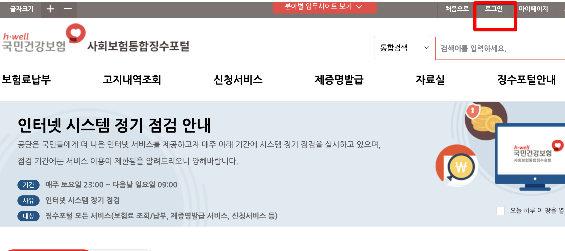 1. 사회보험통합징수포털 사이트 접속