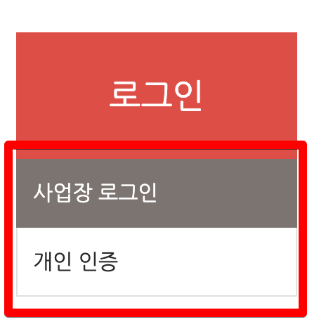 3. 로그인 시 '사업장' 또는 '개인'을 여건에 맞게 선택해 줍니다.