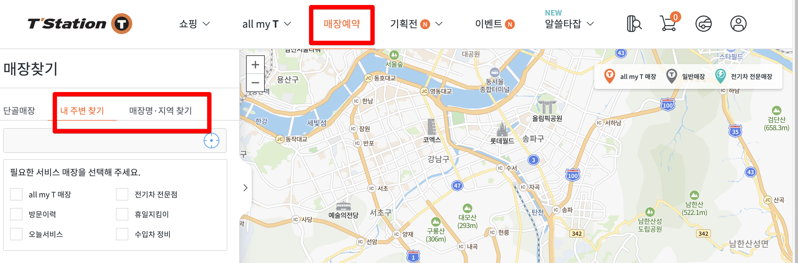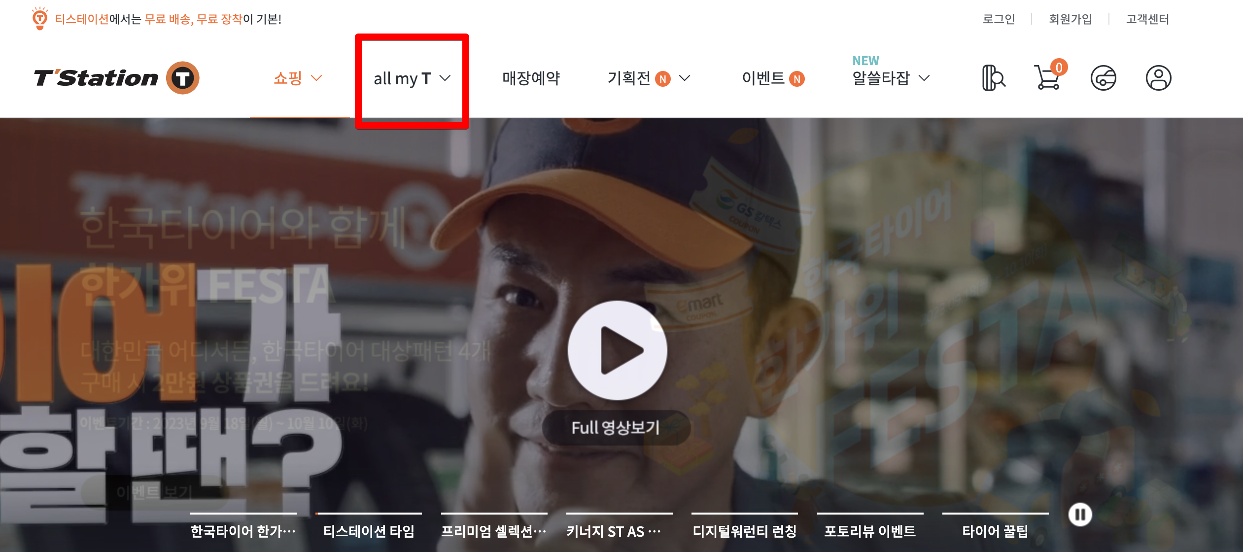 2. 회원가입 및 로그인 후 "all my T"를 선택합니다.