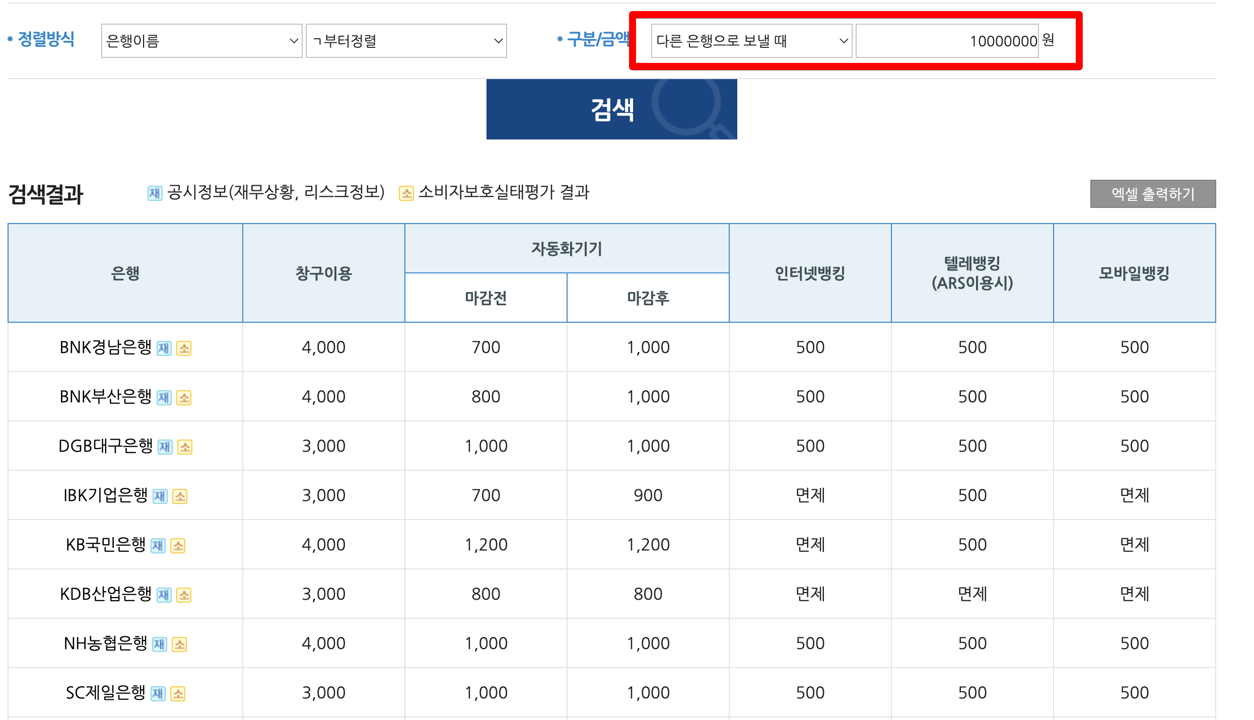 3. 저는 천만 원을 다른 은행으로 보낼 때 수수료를 검색해 보았습니다.