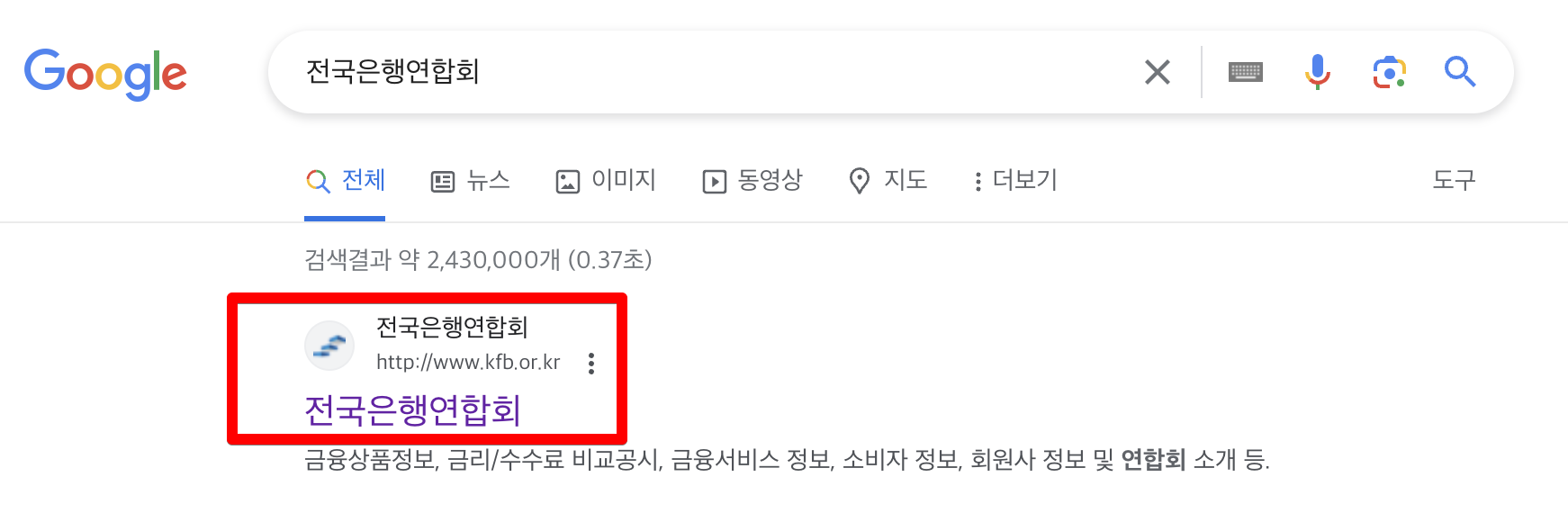 1. 구글에 "전국은행연합회"를 검색 후 선택합니다.
