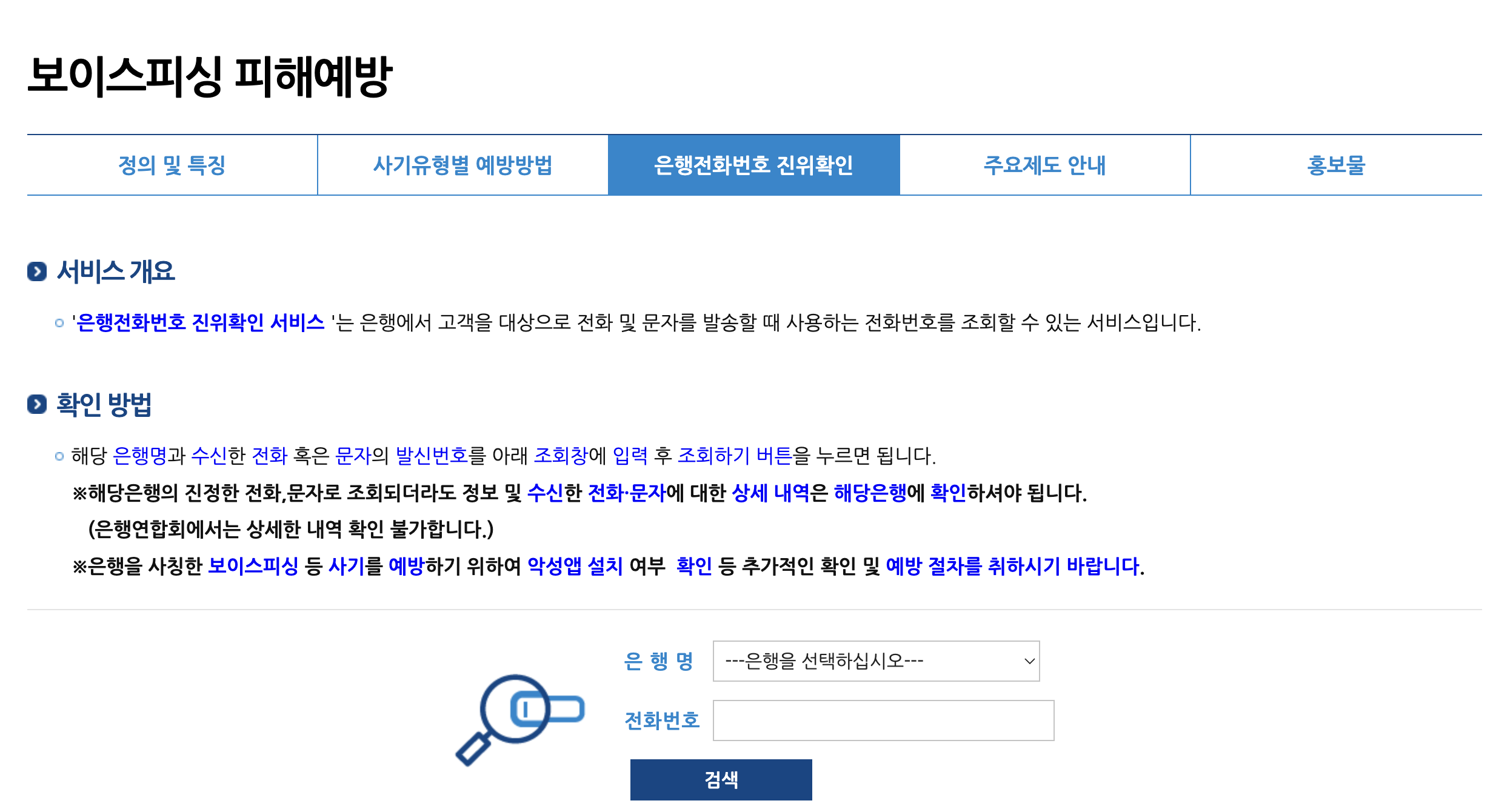 "은행전화번호 진위확인 서비스"를 이용하시면 되는데요.