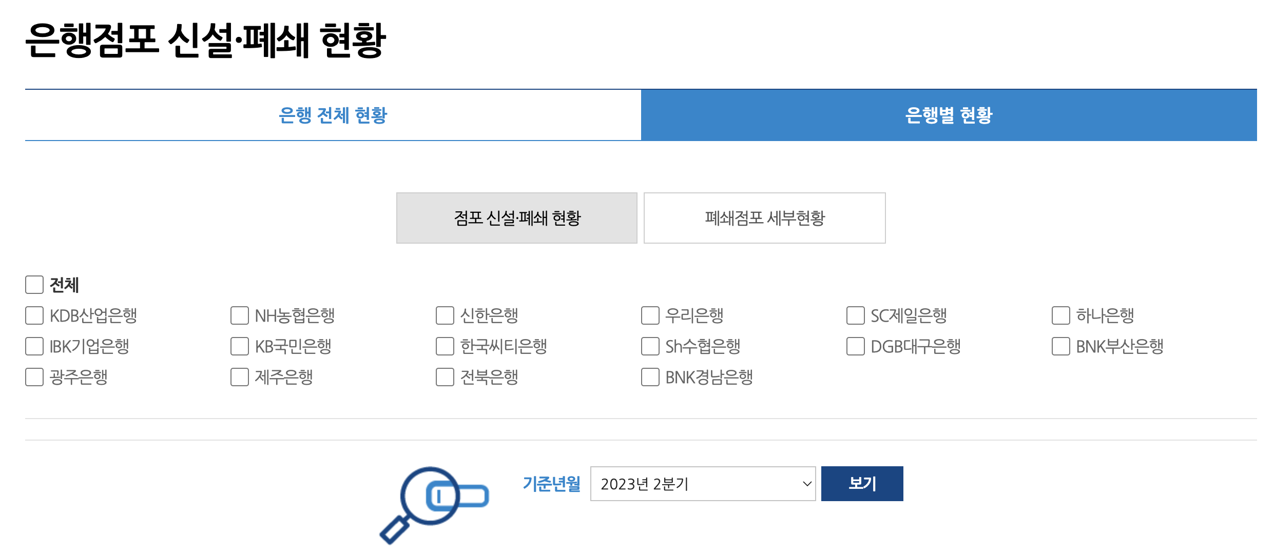 지금 바로 은행점포 신설, 폐쇄 현황 조회 후